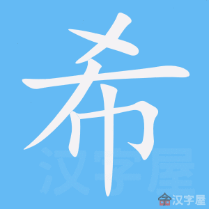 xī 同 “稀”。现在一般写作“稀”。 希 2 xī ❶动盼望;企求。希到会指导|希遵守时间|希望|希图 ○❷名姓。