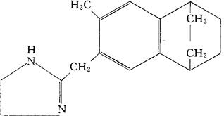 C17H22N2=254.37 CAS-38349-38-1 2-[(1,2,3,4-四氢-7-甲基-1,4-桥亚乙基萘-6-基)甲基]-2-咪唑啉。 2-[(1,2,3,4-Tetrahydro-7-methyl-1,4-ethanonaph thalen-6-yl)methyl]-2-imidazoline. 4,5-二氢-2-[(1,2,3,4-四氢-7-甲基-1,4-桥亚乙基萘-6-基)甲基]-1H-咪唑。 4,5-Dihydro-2-[(1,2,3,4-tetrahydro-7-methyl-1,4-ethanonaphthalen-6-yl)methyl]-1H-imidazole. 血管收缩药。 Metrafazoline. INN,DCIT,USAN.  |