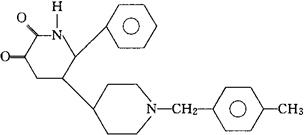 C24H28N2O2=376.50 CAS-14745-50-7 (±)-2-[1-(对-甲基苄基)-4-哌啶基]-2-苯基戊二酰亚胺。 (±)-2-[1-(p-Methylbenzyl)-4-piperidyl]-2-phenyl glutarimide. 1′-[(4-甲基苯基)甲基]-3-苯基-[3,4′-二哌啶]-2,6-二酮。 1′-[(4-Methylphenyl)methyl]-3-phenyl-[3,4′-bipiperidine]-2,6-dione. 抗胆碱药。 Meletimide,R 5183,Methyldioxatrine. INN,DCIT,USAN.  |