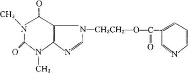 C15H15N5O4=329.22 CAS-13425-39-3 7-(2-羟乙基)茶碱烟酸酯。 7-(2-Hydroxyethyl)theophylline nicotinate. 3,7-二氢-7-(2-羟乙基)-1,3-二甲基-1H-嘌呤-2,6-二酮烟酸酯。 3,7-Dihydro-7-(2-hydroxyethyl)-1,3-dimethyl-1Hpurine-2,6-dione nicotinate. 血管扩张药。 用于治疗下肌阻塞性动脉疾患。 Etofylline Nicotinate,Hesotanol,Hesotin,Nicolin.  |