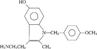 释义 | 羟吲达醇 C19H22N2O2=310.40 CAS-7008-15-3 3-(2-氨乙基)-1-(对-甲氧苄基)-2-甲基吲哚-5-醇。 3-(2-Aminoethyl)-1-(p-methoxybenzyl)-2-methylindol-5-ol. 3-(2-氨乙基)-1-[(4-甲氧苯基)甲基]-2-甲基吲哚-5-醇。 3-(2-Aminoethyl)-1-[(4-methoxyphenyl)methyl]- 2-methylnidol-5-ol. 精神振奋药,5-羟色胺拮抗药。 Hydroxindasol,Presid. INN,USAN. |