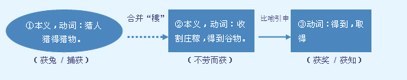 字源解说 本 字“獲” “蒦”是“獲”的本字。蒦,甲骨文写作“隻”: = (隹,鸟雀)+ (又,抓持),像猎人手持 一只鸟 ,表示猎获鸟雀。金文 在“隹” 的头上加 ,表示鸟雀突出的眼毛。当“蒦”的本义消失后,篆文 再加“犬” (猎)另造“獲”代替,强调“猎获”含义。造字本义:猎人猎得猎物。隶化后楷书 将篆文的 写成“草字头”的“蒦” 。俗体楷书 将正体楷书的“蒦” 简化成 。 合并字“穫” 蒦,既是声旁也是形旁,是“獲”的省略,表示猎人得到猎物。穫,篆文 = (禾,谷物)+ (蒦,“獲”,猎人得到猎物),表示农夫得到谷物。造字本义:收割庄稼,得到谷物。 获 文言版《説文解字》:獲,獵所獲也。从犬,蒦聲。 获 白话版《说文解字》:获,捕猎所获的禽兽。字形采用“犬”作边旁,采用“蒦”作声旁。 穫 文言版《説文解字》:穫,刈穀也。从禾,蒦聲。 穫 白话版《说文解字》:穫,收割谷物。字形采用“禾”作边旁,采用“蒦”作声旁。 引申线索