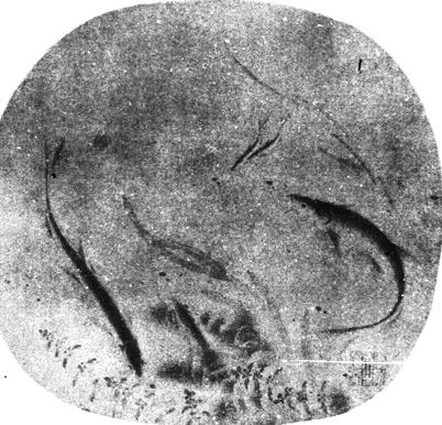 【作品赏析】: 此图原载《历代名笔集胜册》,旧题为刘寀所作,但此图与刘寀的画风有别,以用笔细润和形象幽美见长。 《群鱼戏藻图》是描写几条鱼在水下游戏和觅食的生动场面。游鱼充满生命和活力,左边的一条大鱼直冲水底游来,从隐藏在绿藻深处的另一条鱼身边穿过,想张口吞食嘴边漂来的水藻。 而右边那条鱼却掉头摆尾向上游去,与上边游来的两条小鱼相迎。这一来一去、一上一下的动态,在画面上构成两条流动的弧线,跟圆形的扇面曲线,既和谐,又富有运动感,从而充分地表现了鱼在水中游动的宛转回环,游衍自得的活泼天性。 画家通过对水藻荇草的浮动和虚实远近的描写,不仅表现了流水的动势,而且表现出水的晶莹透明的空间感。画中的游鱼仿佛无所凭借,在虚空中漫游似的。 它不禁使人想起唐朝柳宗元在《小石潭记》中描写的:“小潭清冽……潭中鱼有百许头,皆若空游无所依”的情景。虽然文字与绘画在艺术表达方式上不尽相同,但它们在描写鱼游的艺术境界上,却达到了异曲同工之妙。 。  宋人作 纨扇 绢本设色 纵24.2厘米 横25.1厘米 藏故宫博物院 |