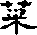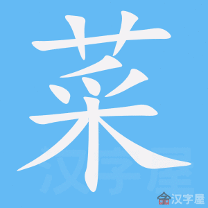 字源解说 采,既是声旁也是形旁,表示采摘。菜,篆文 = (采,摘)+ (艸,植物),造字本义:古人采摘来当作食物的植物。篆文 基本承续金文字形,将金文的 写成 。隶书 将篆文的“艸” 写成 “艹” 。 附 文言版《説文解字》:菜,艸之可食者。从艸,采聲。 附 白话版《说文解字》:菜,百草中可以食用的植物。字形采用“艸”作边旁,“采”是声旁。 引申线索