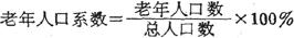 指某一时点上老年人口占总人口的比重。 一般用百分数表示。它是表明人口年龄构成的一个相对指标。计算公式为:  确定老年人口的年龄起点,是计算老年人口系数的一个重要问题。以60岁或65岁为老年人口的年龄起点,所得到的老年人口数是不同的,从而老年人口系数也不同。 为了保证同一国家不同时期(动态),或同一时期不同国家(静态)老年人口系数的可比性,必须有统一的老年人口的年龄起点,现在国际上通行的老年人口的年龄起点为65岁。 用老年人口系数确定人口年龄构成类型的标准是: 年轻人口型:老年人口系数在5%以下; 壮年人口型:老年人口系数在5%-10%之间; 老年人口型:老年人口系数在10%以上。 我国人口学家提出的划分标准是: 年轻人口型:老年人口系数小于4%; 壮年人口型:老年人口系数在4%-7%之间; 初步老龄化型:老年人口系数在7%-10%之间; 明显老龄化型:老年人口系数大于10%。 |