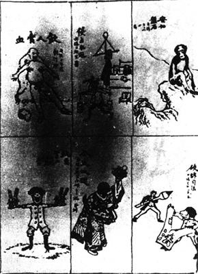 【作品赏析】: 这是长达百幅的漫画组画,作于1913年,开始陆续发表在《民权画报》及《民国新闻》所附画刊上,后出版单行本。 作品揭露和讽刺窃国大盗袁世凯,及时配合了当时全国人民的“讨袁”斗争。整部作品大体上包括两个方面的内容:一是以大量篇幅揭露袁世凯的累累罪行和篡权阴谋,如《饮人膏血》、《杀人卖国》、《黄袍加身》、《玩耍掌上》、《借款签字》、《呜呼共和》等;二是反映了人民群众轰轰烈烈的“讨袁”斗争,如《宣布罪状》、《万人唾骂》、《首先起义》、《义旗所指,矢集独夫》等。可以说这既是以漫画形式出现的“讨袁”檄文,也是当时“讨袁”斗争的历史纪实。从漫画创作的角度看,作者用猿猴比喻袁世凯,不仅巧妙地利用了“猿”与“袁”这两个谐音字,而且把袁氏比作猿猴这种动物,也有助于揭露“窃国大盗”的毫无人性和诡计多端。 在艺术构思上,比喻的选用是贴切的,有著深刻的寓意。漫画中的每一幅既可单独存在,又可统一在一个总的主题之下。 由于这套画是陆续画的,有的在内容上显得重复,有的画幅在排列次序上也显得零乱。尽管如此,在民国初年能出现这部长达百幅的有著较高思想性和艺术性的作品,却是一件了不起的事情。 。【作者介绍】: 钱病鹤(1879-1944),浙江吴兴人。 擅长中国人物画,早年曾出版一部《病鹤画丛》。他的漫画多发表在上海《民权画报》、《民立画报》、《民国日报》及《申报》上,并为《新闻报》副刊“快活林”画过一段时间漫画。1932年日寇攻打上海引起“淞沪之战”,钱的家室在战火中被毁。钱病鹤的晚年穷困潦倒,抗日战争时贫病交迫而死。 。  现代 钱病鹤 漫画组画 |