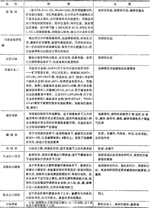 释义 | 耐磨材料 材料抵抗磨损的能力除与其本身性能(硬度、韧性、导热性等)有关外,还与工作条件并因之而形成的磨损类型有关,因此选材时,应先了解和分析磨损类型。表1.5-9所示为各类磨损对材料的要求。典型的耐磨材料见表1.5-11。选材时,还应同时考虑采用各种表面涂层等强化表面的工艺。采用合适的强化工艺往往有非常明显的效果〔76,34〕。 表1.5-9 各种磨损型式要求材料具备的性能 注: 表1.5-11 典型的耐磨金属材料 注:各材料的性能和成分参看第二篇。 |