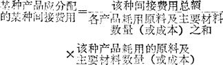 按产品耗用原料及主要材料数量(或成本)的比例分配车间经费和企业管理费等间接费用的一种方法。计算公式: