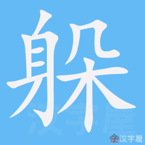 duǒ ❶动避开;避让。他老躲着我|躲不开|一闪身躲过一拳|躲闪|躲让 →❷动隐藏。躲到草垛里|躲在哪儿了?
