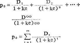 释义 | 股本成本率 指公司在实施投资方案中,以其股票行情稳定不变为前提预期得到的普通股产权筹资部分的最低收益率。 如公司投资方案的预期收益率低于这个最低收益率,其股票市价最终将下跌。按照股利——资本化模式,股本成本率可以认为是边际投资者要求的能使公司每股普通股票的所有预期未来股利的现值等于当前每股普通股票的市价的折现率。 这种折现率的公式是: 式中,p0为零时每股普通股票的价值,D1是第t期的预期每股股利,ke是适当的折现率,∑代表从第1期至无穷(用符号∞表示)期的经过折现的预期未来股利相加之和。 |