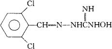 释义 | 胍诺沙苄 C8H8Cl2N4O=247.08 CAS-24047-25-4 2-[(2,6-二氯苯基)亚甲基]-N-羟基-肼羧亚氨基酰胺。 Hydrazinecarboximidamide,2-[(2,6-dichlorophenyl)methylene]-N-hydroxy-. 1-[(2,6-二氯亚苄基)氨基]-3-羟胍。 1-[(2,6-Dichlorobenzylidene)amino]-3-hydroxyguanidine. 抗高血压药。 氯压胍。 Guanoxabenz,Benzerial. INN,USAN. |