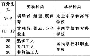 释义 | 胡特提出与生产发展相适应的劳动种类和学校种类配合模式 第二次世界大战后,联邦德国恢复了魏玛共和国时期的双轨制,但从战后初期开始一直有一种意见主张废除双轨制而实行统一学校制。对此联邦德国劳动心理学家胡特(A.Huth)、社会学家穆勒(K.v.Mueller)和教育家魏因施托克(H.Weinstock)作出了当时被认为具有说服力的反驳。他们认为社会需要三种类型的人才,而实际上存在著适应这三种需要的具有不同能力特征的三种儿童。一种儿童具有实践才能,一种儿童具有抽象思维能力,而另一种儿童介于两者之间。根据儿童的这三种特征,学校应当使第一种儿童接受国民学校教育,然后接受职业教育,把他们培养成为实践型人才,如熟练工人和专业工人等等;使第二种儿童接受完全中学教育,然后接受大学教育,把他们培养成为理论型人才,如领导者、经理、顾问和科学家等等;使第三种儿童接受中间学校教育,然后接受专科学校教育,把他们培养成为沟通前两者的“桥梁型人才”,如管理人员和技术员等。1952年,胡特指出,只有当人们按照劳动种类去认识经济结构时,才会理解学校的经济意义,因为像学校等级一样,存在著劳动种类的等级,这种等级是可以与不同学校类型联系起来的。接著他提出了与劳动生产发展相适应的劳动种类和学校类型相互配合的如下模式: |