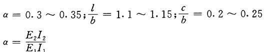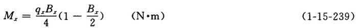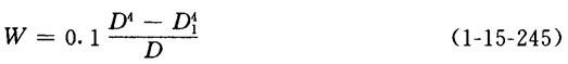 释义 | 胸辊的尺寸及强度、挠度和中高计算 1.胸辊的直径计算 表1-15-23 案辊直径尺寸范围 a-成形网张力在辊体上的合力 b-以上合力与辊体重量的合力 (2)成形网全幅张力合力Qz与辊体重量G的合力计算 【说明】 见图1-15-28b 【公式】 式中 M——合成弯矩(N·m) Mv——铅直面内的诸载荷在辊筒中心横截面上产生的最大弯矩(N·m) Mv=Mg+Mp (1-15-235) Mg——由qg产生的在辊筒中心横截面上的最大弯矩(N·m) qg——由辊体重量G产生的均布载荷(N/m) b——辊面宽(m) Mp——由P1和P2产生的在辊筒中心横截面上的最大弯矩(N·m) Mp=P1a1+P2a2 (1-15-237) P1、P2——分别表示轴头重量和闷头重量(N) a1、a2——分别表示轴头重量p1作用于辊体上相距支点的距离及闷头重量p2作用于相距支点的距离(m) Mq——成形网张力合力在胸辊中心截面上产生的最大弯矩(N·m) 其它符号含义及单位同上 【注意】 对于真空胸辊的鼓筒合成弯矩的计算,还应考虑真空箱吸力和流浆箱突唇喷嘴式上浆装置下浆流压力所产生的均布载荷的弯矩Mx,应作为第三项加入到Mv中。 式中 qx——均布载荷强度(N/m) ∑P——每一真空室算出的压力之和(N) Bx——均布载荷qx作用于铅直面内均布的抽吸面宽(m) P——真空箱的吸力和流浆箱突唇喷嘴式上浆装置下浆流压力(N) P=pF(N) (1-15-241) F——真空箱口的面积(m2) F=BxC (1-15-242) C——真空箱的真空室宽度(沿纸机纵向)(m) p——真空箱吸力与浆流压力之和(Pa) p=p1+p2 (1-15-243) p1——真空室内的真空度(Pa) p2——浆流压力(Pa) Vw——网速(m/s) γ——浆的重度(γ=9810N/m3) g——重力加速度(9.81m/s2) (4)胸辊在中心横截面上的截面模数计算 【公式】 式中 W——截面模数(m3) D——胸辊在包胶或镀铜前的外径或真空胸辊鼓筒外径(m) D1——胸辊辊体钢管或鼓筒的内径(m) (5)胸辊的最大弯曲应力计算 【公式】 式中 σw——最大弯曲应力(Pa) 其它同上 4.胸辊的挠度计算 【说明】 胸辊的挠度计算同其强度计算一样,也应按所受各作用力来考虑。 【公式】 式中 fv——铅直面上的挠度(m) fg——由辊体重量G产生的均布载荷所引起的挠度(m) fx——真空胸辊由于吸力和浆流压力造成的挠度(m) ∑fpi——轴头重量p1和闷头重量p2等集中载荷所产生的挠度(m),见式1-15-250 fq——成形网张力合力所在平面上产生的挠度(m) γ——强力合力所在平面与铅直面的夹角(度) ∑fpi可用下式计算: 式中 fpi——某一集中载荷所产生的挠度(m) Pi——集中载荷,在此为单侧轴头重量P1或单侧闷头重量P2(N) E1I1——辊体在两端闷头以内的中间段的刚度(N·m2) b——辊面宽(m) l——辊的轴承中心距(m) c——辊体在两端闷头以内的中间段的长度(m) αi——对称的集中载荷Pi距两端支点的距离(m) α1、α2——辊筒各段刚度之比 E2I2、E3I3——分别为闷头段及轴头伸出段的刚度(N·m2) 5.胸辊的中高计算 【说明】 因胸辊的挠曲会使喷上成形网的浆流分布不均匀而导致成形质量不良,故胸辊多有中高,就是辊筒中心横截面上的直径大于辊筒辊面两端的直径。 (1)一般胸辊的中高计算 【公式】 K=Dm-De=2f (1-15-253) 式中 K——中高(m) Dm——胸辊中心横截面上的直径(m) De——胸辊辊体端面上的直径(m) f——胸辊的总挠度(m),见式1-15-247 (2)中固辊中高的计算 【公式】 K=Dm-De=2f′ (1-15-254) 式中 K、Dm、De——同上 f′——辊面两端相对于辊筒中心横截面的挠度(m) f′= 式中 q——由成形网全幅张力合力和辊重合成的均布载荷(N/m) E2I2——辊筒外辊壳的刚度(N·m2) l——辊的轴承中心距(m) b——辊筒受均布载荷的面宽,即取为辊面宽度(m) c——辊筒外辊壳固装在芯轴上的中固段的长度(m) α——辊筒刚度比,对于起抗挠及舒展作用的中固辊结构的胸辊,通常在设计中取 E1I1——辊筒在中固段中的刚度(N·m2) |