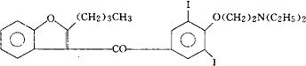 C25H29l2NO3=645.32 CAS-1951-25-3 2-丁基-3-苯并呋喃基4-[2-(二乙氨基)乙氧基]3,5-二碘苯酮。 2-Butyl-3-benzofuranyl4-[2-(diethylamino)ethoxy]-3,5-diiodophenyl ketone. 抗心律失常药。用于室上性心动过速,慢性冠状动脉功能不全等。 乙胺碘呋酮,安律酮。 Amiodarone,Amjodaronum,L-3428,SKF33134-A,Cardarone. 胺碘酮片(乙胺碘呋酮片,安律酮片)。 INN,DCF,USAN,MI.  |