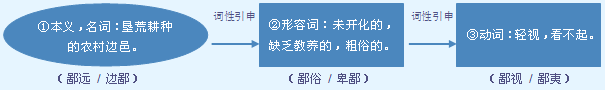 字源解说 “啚”是“鄙”的本字。啚,甲骨文 = (囗,村邑)+ (廪,设在田野的临时谷仓),表示粮仓之邑。当“啚”的“粮仓之邑”本义消失后,篆文 加“邑” (村落)另造“鄙”代替,加强“村落”的含义。造字本义:垦荒种粮的农村边邑。隶书 将篆文的“邑” 写成“双耳旁” 。 附 文言版《説文解字》:鄙,五酇爲鄙。从邑,啚聲。 附 白话版《说文解字》:鄙,五百家叫“鄙”。字形采用“邑”作边旁,采用“啚”作声旁。 引申线索