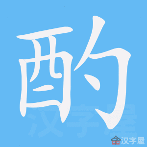 酌,金文=(酉,酒)+(勺,酒匙),造字本义:斟酒。篆文将金文的“勺”写成