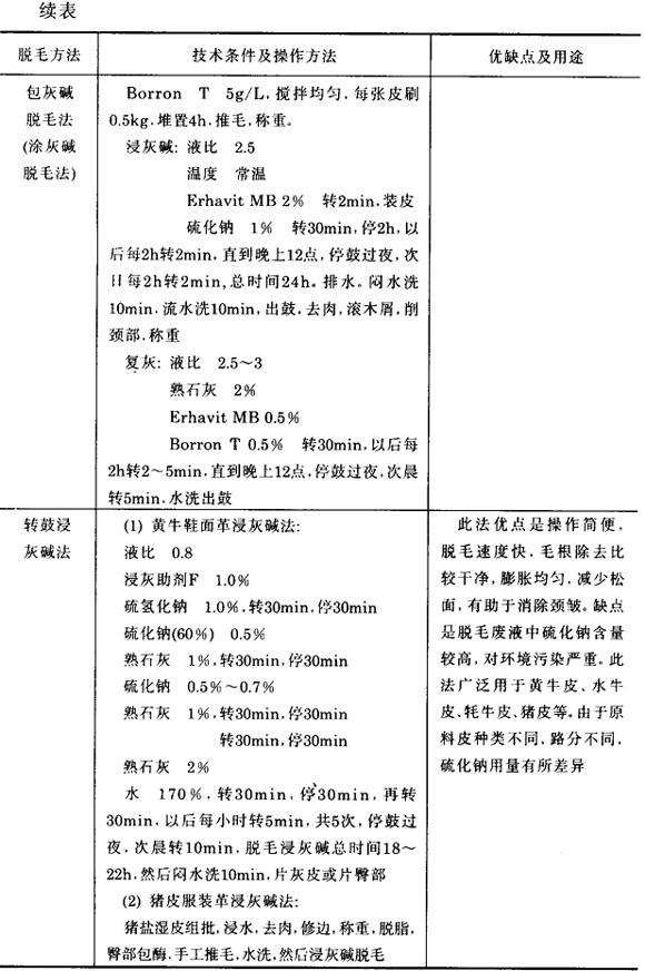 释义 | 脱毛 (一)脱毛的目的 除去原料皮上的毛被和表皮,得到粒面光洁的裸皮;进一步除净皮下组织层,纤维间质,皂化油脂,适度松散胶原纤维结构,为成革柔软性、丰满性、弹性打下良好的基础。皮革行业有句古话:“好皮出在灰缸上”。虽然今日的制革技术水平比过去有很大的进步,但是这句古话仍说明脱毛在制革生产过程中的重要性。 (二)脱毛方法 目前,国内外脱毛方法很多,我国通常根据脱毛时所使用的脱毛材料的性质和操作方法的不同分为以下几种: 为了减轻和消除碱脱毛法排出的废液对环境造成严重的污染,近几年来,国内外研究和推广了保毛脱毛法、少用或不用硫化钠的脱毛法,这些方法的介绍见第三章和第六章。 我国常用的脱毛方法的介绍详见表2-13。 表2-13 常用脱毛方法 氧化脱毛法是我国60年代试验成功的一项无硫化物污染的脱毛工艺,曾一度在牛皮鞋面革生产上应用。此法的优点是可将脱毛、软化、浸酸放在同一工序中完成,简化了操作,缩短了生产周期,成革品质较好。但是此法操作要非常小心,否则控制不当,氧化作用过快,突然产生大量的二氧化氯和氯气,容易引起转鼓爆炸。另外要求转鼓密封性能好,否则产生的二氧化氯气体从转鼓内逸出、对操作人员健康有害,而且对转鼓腐蚀严重,维修、保养费用高。因此,目前此法在我国没有得到推广应用。 (三)脱毛技术控制要求及注意事项 1.技术控制要求 (1)无论何种脱毛方法,脱毛后的裸皮均应除净毛被,不得残留表皮和小毛、裸皮粒面洁净,色泽正常。 (2)灰碱皮膨胀适度,且有弹性,切口呈半透明,不得有黄心。 (3)酶脱毛裸皮不得残留小毛,颈部和腹肷部无毛穿孔现象,裸皮粒面毛孔清晰。 2.注意事项 (1)严格控制硫化钠的用量,从以下几个方面著手: 在灰碱脱毛法中硫化钠用量依据原料皮的种类、张幅大小、厚薄、毛被发达程度、液比、设备,以及季节的变化等因素灵活调整。 (2)灰碱脱毛法所用的熟石灰,要求含CaO为60%~70%为好,颜色洁白,质量较轻。如果熟石灰颜色发暗、较重,一般含硅、镁等杂质较多,影响灰皮品质。如果用熟石灰膏浸灰碱,必须用水稀释搅拌,取熟石灰浆用,去掉沉淀等杂质,否则灰渣会划伤灰碱皮粒面。 (3)在转鼓浸灰碱初期,液比0.5~0.7,此时灰碱液中硫化钠浓度较高,脱毛作用快,一般在2~3h内就可将毛和表皮完全毁掉,而且毛根除去较净。另外,灰碱皮膨胀不太大,碱渗透快,当碱渗透灰碱皮后,再补充水,使灰碱皮膨胀均匀,减少松面。 (4)在浸灰碱过程中,加入浸灰助剂,可加快灰碱向皮内渗透,抑制灰碱皮过度膨胀,减少松面,有助于消除颈皱和腹部皱纹,有的浸灰助剂还具有乳化油脂的作用。因此,目前在碱法脱毛中普遍使用浸灰助剂。 (5)硫氢化钠能增强脱毛作用,同时又不会引起灰碱皮过度膨胀,因而使用安全,但是渗透力不如硫化钠,特别是对多脂皮渗透能力差,常与硫化钠配合使用。 (6)氢氧化钠对皮膨胀作用强烈,而且对胶原水解作用很强,胶解作用差,除猪皮双碱脱毛法和酶法脱毛前碱膨胀使用外,其它脱毛法不用。 (7)酶脱毛前的碱膨胀处理不宜过大,否则碱作用太强,碱膨胀皮四周卷边,坚牢度大大降低。一般液体氢氧化钠(俗称液碱)含量为30%,其用量为3%~3.5%,分两次加入,使皮逐步膨胀。 (8)无论转鼓灰碱脱毛法和酶脱毛法,使用的转鼓的转速为4r/min(转鼓Φ2.5~3.0m),或2~3r/min(转鼓Φ3.5m及其以上),并且转鼓转停结合,使脱毛时机械作用缓和,防止因机械作用过强引起松面和毛穿孔现象。 |