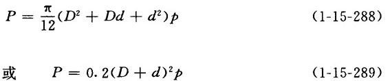释义 | 膜式气动加压提升机构附加压力的计算 【说明】 膜式气动加压装置具有结构简单,没有滑动密封件,机械效率高,惯性小,柔性好等优点,故被广泛采用。其缺点是不能传递过大的压力,使用的压缩空气压力一般不超过500~600kPa(5~6kgf/cm2)。橡胶膜片传递的压力有下列两种计算方法。式1-15-289为近似计算公式。 【公式】 式中 P——橡胶膜片传递的压力(N) p——压缩空气表压(Pa) D——膜片工作直径(m) d——顶盘直径(m) |