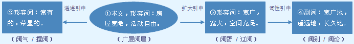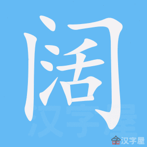 字源解说 活,既是声旁也是形旁,表示可动、自由。阔,篆文 = (门,代表房屋)+ (活,自由),表示屋宽有自由。造字本义:房屋宽敞,活动自由。隶书 将篆文的“活” 写成 。 附 文言版《説文解字》:闊,疏也。从門, 聲。 附 白话版《说文解字》:阔,宽疏。字形采用“门”作边旁,采用“ ”作声旁。 引申线索