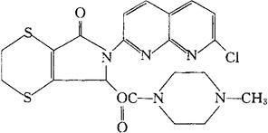 C20H20ClN5O3S2=477.98 CAS-53813-83-5 4-甲基-1-哌嗪羧酸与(±)-6-(7-氯-1,8-二氮杂萘-2-基)-2,3,6,7-四氢-7-羟基-5H-对-二硫酮[2,3-c]吡咯-5-酮形成的酯。 4-Methyl-1-piperazinecarboxylic acid ester with(±)-6-(7-chloro-1,8-naphthyridin-2-yl)-2,3,6,7-tetrahydro-7-hydroxy-5H-p-dithiino[2,3-c]pyrrol5-one. 6-(7-氯-1,8-二氮杂萘-2-基)-2,3.6,7-四氢-7-氧代-5H-[-1,4]-二硫酮[2,3-c]吡咯-5-基4-甲基哌嗪-1-羧酸酯。 6-(7-Chloro-1,8-naphthyridin-2-yl)-2,3,6,7-tetrahydro-7-oxo-5H-[1,4]dithiino[2,3-c]pyrrol-5-yl 4-methylpiperazine-1-carboxylate. 抗焦虑药,催眠药。 Suriclone,Clexane,RP 31264. INN,BAN,USAN,MI.