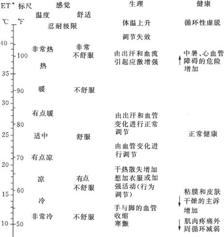 | 释义 | 舒适健康指数 用新有效温度(ET*)标示微小气候诸因素综合作用下人的冷热感觉和舒适度感觉及人体生理反应和健康反应的指标(如图)。由美国供暖、制冷和空调工程师协会发展起来,适用于评价坐著工作且长时暴露的工作环境。
