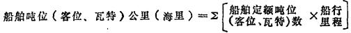 报告期内运输船舶定额吨位(客位、瓦特)数与其所完成航次的航行里程乘积。它是反映船舶生产能力的一个复合计量单位,也是计算船舶平均航行速度的基础资料之一。其计算公式为:  船舶吨位(客位、瓦特)公里(海里)按重航和空航分别计算。重航船舶吨位(客位、瓦特)公里(海里)是指船舶定额吨位(客位、瓦特)数与其完成航次的载重航行里程的乘积(载重航行里程即有载航行里程,又称重航里程)。其计算公式为:  船舶吨位(客位、瓦特)公里(海里)中除去重航船舶吨位(客位、瓦特)公里(海里),即为空航船舶吨位(客位、瓦特)公里(海里)。 |