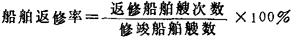 释义 | 船舶返修率 修理完工出厂的船舶,由于维修质量(包括材料、配件质量)不好,所造成的回厂返修船舶艘次数占修竣船舶艘数的比重。其计算公式为: 式中“返修船舶艘次数”指修竣出厂的船舶由于维修质量(包括材料、配件质量)不好而回厂返修的船舶艘次数。一艘船舶返修一次,按一个返修艘次计算。船舶返修率是考核船厂修船质量的指标。 |