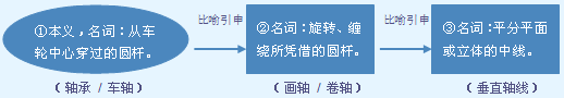字源解说 由,既是声旁也是形旁,表示从、凭。轴,篆文 = (车,转轮)+ (由,凭借),表示轮子旋转之凭借。造字本义:穿过车轮中心、使车轮赖以旋转的圆杆。隶书 将篆文字形中的 写成 。俗体楷书 依据类推简化规,将正体楷书字形中的 写成 。 附 文言版《説文解字》:軸,持輪也。从車由聲。 附 白话版《说文解字》:轴,保持和控制车轮运行的横杆。字形采用“车”作边旁,“由”作声旁。 引申线索