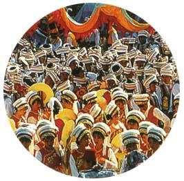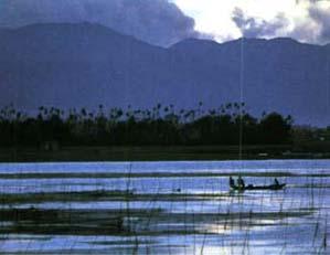 释义 | 苍山 苍山又称点苍山。又称灵鹫山,南诏时封为中岳山。地处云岭山脉南端,属横断山脉余脉,因山色苍翠而得名,它北起上关,南达下关,东至洱海之滨,西临黑惠江。南北长42公里,东西宽2公里,有19峰18溪,南北横列似屏,延伸5余公里。山峰平均海拔都在3500米以上,最高峰马龙峰为4122米,山顶常年积雪。苍山19峰间每两峰之间都有1条溪水的,18溪溪水如瀑,倾泻注入洱海。“云、雪、峰、溪”为苍山四大奇观。 苍山之云,神奇诡秘,变化莫测。“玉带云”与“望夫云”是苍山最有名的景观。当天晴风定,浮云漫卷,绵延数十里,横亘在十九峰山腰,如缟如素,“天将玉带封山公”,这就是“玉带云”,玉带云出现在夏秋之交,它还是一种丰收的预兆。民谚:“苍山系玉带,饿狗吃白米。”在冬春之际,在玉局峰会出现一朵银亮雪白的孤云,不久它会突然由白变黑,越升越高,身影越拉越长,形如一位穿著黑衣黑裙的窈窕妇女,披头散发向洱海声嘶力竭地哭泣喊叫。天气再好也立刻就狂风大作,风雨交加,雷鸣电闪,巨浪滔天,那风势犹如要把海水吹干,这就是“望夫云”。 关于望夫云,有个美丽的传说。说的是南诏阿凤公主与苍山上一位打猎的小伙子相恋,但遭到南诏王激烈反对,竟请来一位法师将猎人害死,并打入海底变为一个石螺。阿凤公主忧伤而死,在玉局峰上化做一朵云彩,飘浮著寻找他的情人,但海水遮住了她的视线,她愤怒至极,借来狂风要把海水吹干与情人相会。 人们将望夫云这个自然现象,赋与了一个美丽的传奇故事,寄托了具有丰富艺术想象力的白族人民对爱情与自由的向往与追求。实际上望夫云的奇特景观,是风季来临后,一些碎积云在先,接著大片积云出现的天气现象。 苍山主峰马龙峰,海拔4112米,山势峻拔挺秀,山顶积雪,经夏不融,景色壮丽,成为苍山“云、雪、峰、溪”的四景之一——“苍山雪”。 苍山植物垂直分布明显,植物种类有3000多种,为山茶、杜鹃、玉兰等名贵花木主要产地,还有党参、贝母、木香、冷杉、红豆杉、雪兰等药用植物和珍贵树种,是我国的植物资源宝库。 大理三月街 每年农历三月十五至二十一日,在大理城西苍山中和峰之麓、中和溪畔的旷野举行,是白族人民最盛大的节日。传说南诏时,每年农历三月十五,“观音圣母”到大理传经说法,众信徒沐浴斋戒,到佛寺礼拜诵经。相沿成习,渐渐演变成具有浓厚民族特色的贸易集市和民族盛会。是时,苍山脚下,中和溪旁,客商云集,人群如潮,赛马、射箭、唱大本曲、跳霸王鞭,热闹异常。正如电影《五朶金花》歌中所唱:“一年一度三月街,四方八面有人来,各族人民齐欢唱,赛马唱歌做买卖。”近年,海内外及各省市均闻风而来,最盛时达20万人之众。原址已修建为正式街市,门坊书刻“三月街”三字。 |