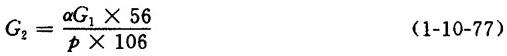 (一)方法一 【说明】 根据苛化反应: CaO+H2O+Na2CO3 2NaOH+CaCO3/p> 1molCaO 1molNa↓(2 CO3 即56gCaO正好与106gNa2CO3完全作用,故可导出其计算式如下: 【公式】  式中 G2——石灰消耗量(kg) G1——绿液中Na2CO3含量(kg) p——石灰的纯度(%) α—石灰过量系数,通常取1.05~1.10 【例2】 求例1中的石灰用量。a取1.1  (二)方法二 【公式】  式中 G1——石灰用量(kg/t浆) A——蒸煮清耗的有效碱(kg/t浆)(Na2O计) S——白液的硫化度(%) m——苛化率(%) a——石灰过量系数,同上 p——石灰中有效CaO含量(%) |
