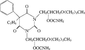 释义 | 苯巴双氨酯 C28H42N4O9=578.66 CAS-15687-09-9 1,3-双(3-丁氧-2-羟丙基)-5-乙基-5-苯巴比土酸二氨基甲酸酯。 1,3-bis(3-Butoxy-2-hydroxypropyl)-5-ethyl-5-phenylbarbituricacid dicarbamate. 催眠镇静药。 苯巴氨酯。 Difebarbamate. INN,DCF,NFN,USAN. |