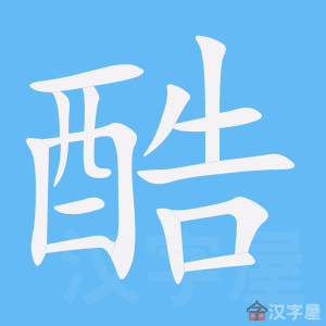 字源解说 酷,古陶 = (酉,酒)+ (告,杀牛祭祀),造字本义:用于祭祀的浓香美酒。篆文 字形与古陶字形相似。 附 文言版《説文解字》:酷,酒厚味也。从酉,告聲。 附 白话版《说文解字》:酷,酒味浓厚。字形采用“酉”作边旁,采用“告”作声旁。 引申线索
