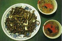 释义 | 茶汤/面茶 茶汤原是明代宫廷茶点,后传至民间。茶汤的作法是将炒熟的糜子面放上红糖,用滚烫的水冲成糊状。冲好的茶汤一般都加上青红丝、山楂条、核桃仁等果料,颜色好看,香甜可口。现在京城的小吃店内或庙会上都经营这种小吃,茶汤摊还兼营油茶或杏仁茶。油茶是用牛油或素油将面粉炒熟,再用开水冲成;杏仁茶则是用藕粉加杏仁香精冲制而成。 |