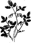 【释义】: 大豆,一作菽,亦为豆类总称。 《豳风·七月》六章:“七月亨葵及菽,八月剥枣。”郑《笺》:“菽,本亦作叔,藿也。”《小雅·小宛》三章:“中原有菽,庶民采之。”毛《传》:“中原,原中也。菽,藿也。”孔颖达《正义》:“菽者大豆。”《小雅·采菽》一章:“采菽采菽,筐之筥之。”郑《笺》:“菽,大豆也。”筐之,用筐装它。筥,jǔ。圆形的盛物。《本草纲目》〔集解〕:“大豆有黑、自、黄、褐、青、斑数色;皆以夏至前后下种,苗高三四尺,叶团有尖,秋开小白花成丛,结荚长寸余,经霜乃枯。”《大雅·生民》四章:“以就口食,艺之荏菽。”郑《笺》:“戎菽,大豆也。”《尔雅·释草》:“戎菽谓之荏菽。”孙炎曰:“大豆也。”《本草纲目》李时珍〔释名〕:“《广雅》云:大豆,菽也。小豆,苔也。 角曰荚,叶曰藿,茎曰萁。”〔集解〕《吕氏春秋》云:“得时之豆,长茎短足,其荚二七为族,多枝数节,竞叶蕃实,大菽则圆,小菽则团。先时者,必长以蔓,浮叶疏节,小荚不实。 后时者,必短茎疏节,本虚不实。”  |