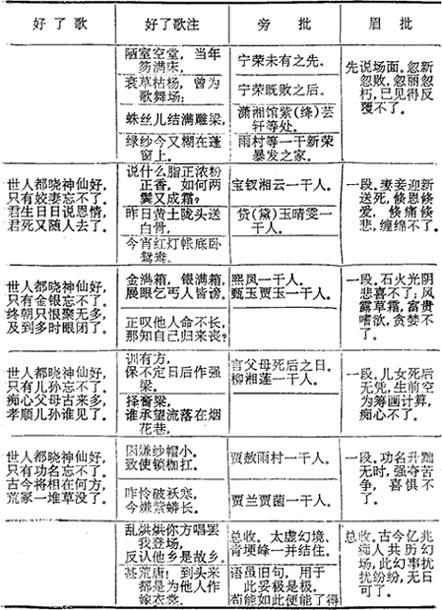 【条目出处】:见第三回 【释文】: 荣禧堂是荣府正内室,堂屋正中挂著这副东安郡王手书的对联,意为:座中人佩饰珍珠,光彩照人可与日月争辉;堂前客身穿礼服,绚丽夺目可共云霞比美。 两句极言荣禧堂主人和来客的雍容华贵、显赫荣耀。珠玑,即珍珠,圆者为珠,不规则者称玑;黼黻(fǔfú府服),古代贵族官僚礼服上所绣花纹,黑白相间的斧形图案为黼,青黑相间的 形图案为黻。但“珠玑”、“黼黻”在诗文中又常用以比喻华美的辞藻,故此联亦有称誉荣禧堂主客文采风流的隐含意义。 附录:《好了歌》、《好了歌注》及甲戌本有关脂批对照表