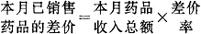 药品进销差价与药品销售价的比率。 有综合差价率和分类差价率两种。前者是不分药品的种类而综合计算的差价率,计算比较简便,但由于各类药品的实际差价不同,其结果的正确性较差。后者是按药房药品的不同类别分别计算的差价率,计算虽繁琐,但其结果比较接近实际。其计算公式为:  通过差价率的计算公式,可求出本月药房药品应分摊的差价额;也可求出已销售药品的进销差价即已实现的进销差价,其计算方法为:  求出已销售药品的差价,进而可以推出已销售药品的进价成本,即当月已销售药品的进价成本等于本月药品费支出总额(按零售价计算)减本月已实现的药品进销差价。 |