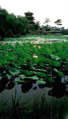 在雾灵山主峰玉皇顶西南的山顶上,有一片五十多亩的宽阔平地,形如盛开的莲花,故名“莲花宝池”。游人到此,像站在莲花之上,清凉幽静,心旷神怡。