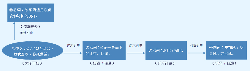字源解说 较,金文 = (战车)+ (两只手 ,表示七手八脚),表示战车上的士兵们七手八脚地应战。有的金文 = (战车)+ (两只手 )+ (攴,持械击打),表示当两辆战车交会时,敌我战车的士兵们相互持械攻击。造字本义:交会的敌我战车,相互持械攻击,你死我活。篆文 省去金文字形中的“攴” ,同时大大简化“車”的字形。隶书 误将篆文的“爻” 写成“交” 。 附 文言版《説文解字》:較,車騎上曲銅也。从車爻聲。 附 白话版《说文解字》:较,车箱两边椅板上弯曲的铜钩。字形采用“车”作边旁,“爻”作声旁。 引申线索