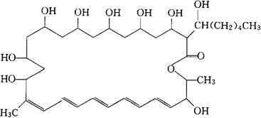 C35H58O11=654.84 CAS-480-49-9 4,6,8,10,12,14,16,27-八羟-3-(1-羟己基)-17,28-二甲基-氧环廿八氧杂烷-17,19,21,23,25-五烯-2-酮。 4,6,8,10,12,14,16,27-Octahydroxy-3-(1-hydroxyhexyl)-l7,28-dimethyl-oxacyclooctacosa-17,19,21,23,25-pentaen-2-one. 抗生素类药(抗真菌药)。 非力平。 Filipin,Filimarisin,Filipin Ⅲ,U-5956.NSC3364. INN,USAN,MI.  |