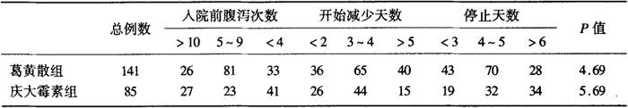 释义 | 葛根 黄芩 黄连 【中医理论】 葛根甘辛而平,既能解表退热,又能升发脾胃清阳之气而止下利;黄芩、黄连清热燥湿,厚肠止利。三药合用具有解表清里之功效,以葛根为君药,配伍苦寒之黄芩、黄连为臣药,配以甘草甘缓和中、并协调诸药,为佐使,并按一定量配伍组成葛根芩连汤。主治外感表证未解,热邪入里,身热,下利臭秽,肛门有灼热感,胸脘烦热,口干作渴,喘而汗出,苔黄脉数。 【化学研究】 1.葛根芩连汤的含量测定方法 1.1 薄层层析一比色法(汤剂)[1] 葛根提取液的制备:取葛根15g,加甲醇150ml,浸泡1d,滤取浸液备用。葛根黄芩黄连汤去葛根的制备:取黄芩、黄连各3g,甘草2g,加水300ml,煮沸30min,得药液220ml,取22ml,加甲醇10.0ml放置备用。 葛根黄芩黄连汤的制备:按处方量称取葛根、黄芩、黄连、甘草,用直火煎二次,每次煎出150±10m1,二次煎液合并,精密量取。 薄层层析条件:层析板规格5cm×20cm,每块用1.7g硅胶G,加6ml10.5%羧甲基纤维素钠溶液混匀,湿法制板,105℃活化1h后点样(每块薄层板点两个试样),用展开剂氯仿-甲醇-醋酸乙酯-水(27∶28∶40∶10)饱和1h后再上行展开。将纯品葛根素、单味葛根提取液和葛根黄芩黄连汤样品分别点于薄层板上,按上述条件层析展开后,置荧光灯下观察,分别得一与葛根素相对应的天蓝色荧光斑点。 含量测定方法:标准曲线的绘制:分别取葛根素纯品的甲醇液(5.98mg/ml)1、2、4、6、8、20μl于带塞试管中,加甲醇至0.1ml,并随行0.1ml甲醇作空白对照,分别加蒸馏水0.9ml,pH缓冲液2.0ml和磷钨酸——磷钼酸试剂0.5ml,放置3min后加5%Na2C03溶液1.0ml,在70℃水浴加热5min,离心12min(2000r/min),冷却后在700nm波长处比色测定。测定光密度与葛根素纯品含量(μg)的数据,经回归分析得一回归直线方程:C=157.36A-1.10(r=0.9979)。 回收率试验:纯品法:分别精密量取一定量葛根素纯品甲醇液二份,一份经薄层层析后按药典法[2]收集葛根素荧光点于试管中进行分析,另一份甲醇液同时按上述标准曲线绘制项下测定,由二者测定值求得回收率。加样法:我们采用两种加样回收法: 葛根提取液加样回收试验:取前制备的葛根提取液10.0ml三份,加10ml葛根黄芩黄连汤(去葛根)样品中,沸水浴上挥干后加入10.0ml甲醇,放置过夜,得样品A。取样品6μl,点样展开,测定回收率为100.57%。 纯品加样回收试验:取一定量的葛根黄芩黄连汤样品点样后,再加上一定量的纯品溶液层析展开,按标准曲线项下测定得回收率。葛根素纯品为105.00%,葛根黄芩黄连汤为103.40%。 样品测定:按处方称量(葛根用百分之一天平),每剂煎两煎,每煎150±10ml合并,准确量取10.0ml于30ml三角瓶中,加乙醇,置水浴上蒸干,加5.0ml甲醇振摇后放置过夜,取10μl点样,层析后按上述方法测定,五剂药的测定值见表1-27-1。 表1-27-1 葛根黄芩黄连汤中葛根素的含量测定 2.2 治疗小儿秋季腹泻[9] 治疗组40例,男21例,女19例;年龄6月~1岁24例,1~2岁16例,平均年龄1.5岁。其中腹泻≤10次/d23例,腹泻>10次/d17例。轻度脱水19例,中度脱水20例,重度脱水1例。对照组30例,男13例,女17例,年龄6个月~1岁16例,1~2岁14例,平均年龄1.4岁。其中腹泻≤10次/d18例,腹泻>10次/d12例。轻度脱水14例,中度脱水15例,重度脱水2例。两组入院前平均发病天数分别为1.7d和1.9d,未经正规治疗。两组病情,临床表现,病程分布基本一致。治疗组采用加味葛根芩连汤:葛根、黄连、甘草、藿香、木香各3g,黄芩、滑石、车前子、神曲各6g。6个月小儿每日1剂分3次口服。其余按年龄增减。对照组:用病毒灵剂量4mg/kg,次。每日服3次。两组均按脱水程度给以ORS液口服或静脉补液,纠酸等对症治疗,不禁食。 疗效标准为:痊愈:服药3d,大便次数≤3次/d,性状正常,临床体征消失。有效:服药3d大便次数≤3次/d,性状正常,临床体征减轻。无效:服药3d后腹泻,症状,体征无明显改变者。 表1-27-18 两组治疗小儿秋季腹泻疗效表 2.3 病毒唑合用葛根芩连汤治疗小儿秋季腹泻[10] 对于轻、中度脱水者均采用ORS补液;若严重呕吐者不能口服或有重度脱水伴有水、电解质紊乱、酸碱平衡失调及循环衰竭者,宜先静脉补液,待病情好转稳定时改用0RS补充继续丢失及生理需要量。对照组在此基础上,给予病毒唑注射液10~15mg/kg加入5%葡萄糖液250ml中静滴,1次/d。中药疗法基本方:葛根10g、黄芩10g、黄连5g、炙甘草3g。以上诸药研为细末并混合均匀,用法按1次1g/岁,日服3次。随证加减,有腹胀者加木香,腹痛者加白芍。治疗组在对照组的基础上加用中药疗法。 疗效判定标准:治愈:每日排便1次,成形,大便镜检正常,临床症状及体征完全消失;好转:每日排便2次或不成形、或大便镜检可见脂肪球,临床症状有所改善;无效:用药后临床症状及体征无明显改善。结果治疗组241例全部治愈,平均2.84±0.75d;3d内治疗率为81.3%(196/241),其中有48例仅用药1~2次腹泻即止;106例用药1d内大便为糊状,发热均在入院后6.5h内退热,脱水纠正时间平均为2.14d。对照组治愈90例,好转10例,疗程2~8d,平均4.13±0.92d;3d内治愈率为36%,平均退热时间1.8d,脱水纠正时间平均为3.87d。治疗组在治愈率、平均止泻天数及3d内治愈率方面均显著优于对照组(P<0.05)。 2.4 将葛根芩连汤加味制成灌肠液治疗小儿腹泻 病程最短1d,最长62d。大便次数最少2次/d,最多20余次。其中急性89人,迁延性11人,中毒性菌痢1人,慢性菌痢1人。轻型78入(治疗组42人、对照组36人),重型24人(治疗组13人,对照组11人)。发热49人。轻度到中度失水