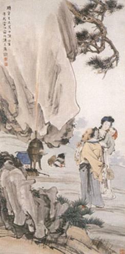 葛洪(283~363年)出身于贵族世家,世代都是高官。 他13岁时父亲去世,家庭从此陷入困境,他也开始过起了平民生活。葛洪在年轻时就读了一些道家著作,并对于道家的长生修炼术产生了浓厚的兴趣。 18岁时他拜著名道士郑隐为师,学到了许多关于道家的知识。21岁时,由于当时发生了一起谋反事件,他师父退隐到一座深山里,再也没有出现。 而葛洪却因为率领部队平息了叛乱,被封为将军。后来他到广州做官,在官场日益感受到人世间的黑暗,终于决心辞去官职,专心修道,并最终写成了《抱朴子》一书。 后来朝廷再三邀请他去做官,但他从未动摇。 他一生写了许多著作,特别是《抱朴子》一书,对道教的最终成型和后来的兴盛产生了深刻的影响。  葛洪炼丹图(李润作) |