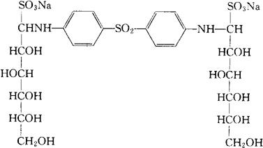 C24H34N2Na2O18S3=780.71 CAS-554-18-7 1,1′-[磺酰双(4,1-亚苯基亚胺)]双[1-葡糖基-2,3,4,5,6-五羟-1-己烷磺酸]二钠。 Disodium1,1′-[sulfonylbis(4,1-phenyleneimino)]bis[1-gluco-2,3,4,5,6-pentahydroxy-1-hexaneolfonate]. 抗麻风病药。用于治疗麻风病。 葡萄胺苯砜钠,普洛明。 Sodium Glucosulfone,Promin,Protomin,Promanide,Didextron Sulfone. USP.  |