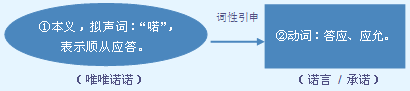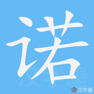 字源解说 若,既是声旁也是形旁,是“喏”的拟声,同时表示与……相一致。诺,篆文 = (言,诉求)+ (若,与……相一致),表示与对方诉求保持一致。造字本义:答应“喏”,表示愿意按对方的诉求行动。隶书 将篆文的 简写成 。“许”* 表示同意、赞成,给予对方做某事的权力;“诺”表示接受、顺从,愿意按照对方的诉求去做某事。 附 文言版《説文解字》:諾, 也。从言,若聲。 附 白话版《说文解字》:诺,表示应答的声音。字形采用“言”作边旁,采用“若”作声旁。 引申线索