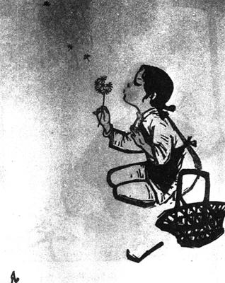 释义 | 蒲公英 【作品赏析】: 你有过农村生活的经历吗?孩子们到田野里拾穗、砍柴或者摘菜,总是边玩边做活。 吹蒲公英,是女孩子喜欢玩的一种游戏。蒲公英成熟之后,就要自动落花,满天飞扬。把它摘下来,吹上一口气,那又轻又细又好看的绒花就轻轻飘飘随风而去,好似雪花一般。把蒲公英送到广阔无垠的田野上空飘飞,是孩子们的一种极大的乐趣,因为他们从中感到了自己的力量,自己的创造。对于成年人,孩子们的天真玩耍,吹飘而去的小小蒲公英,却可以唤起对于那已经逝去的童年的回忆,可以追回被繁杂的人生奔波磨损沉淀了的童心。焦墨印头发、眼睛、小竹篮和小镰刀,谈墨印衣服、脸部与手的刻线;脸和手套浅红色,唯小嘴套一点红,背景留白,宛似国画。空灵、优美的境界加上蓝色的小兜肚,让人感到浓厚的民族情味。此图作于1958年,曾参加世界青年联欢节美展,并获金质奖章。 。【作者介绍】:吴凡(1923- ),重庆人。 1948年毕业于国立艺专。1950年至今先后在重庆市文联、美协四川分会工作,历任美协四川分会副主席、中国版画家协会理事。 他的作品轻松、优美,构思巧妙,能以小见大,善于从平凡的生活中发现诗意和人性的美好方面。代表作除《蒲公英》外,还有《小站》等。 。 现代 吴凡 水印 套色木刻 纵40厘米 横31厘米 |