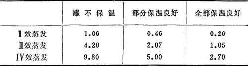 释义 | 蒸发罐保温与热损失的关系 多效蒸发系统中保温状态同热损失间的关系见表5-41。 表5-41 多效蒸发系统中的热损失(对进入Ⅰ效用汽的%) 从表中看出,根据保温条件,在Ⅳ效蒸发系统中有3~10%的热损失。 |