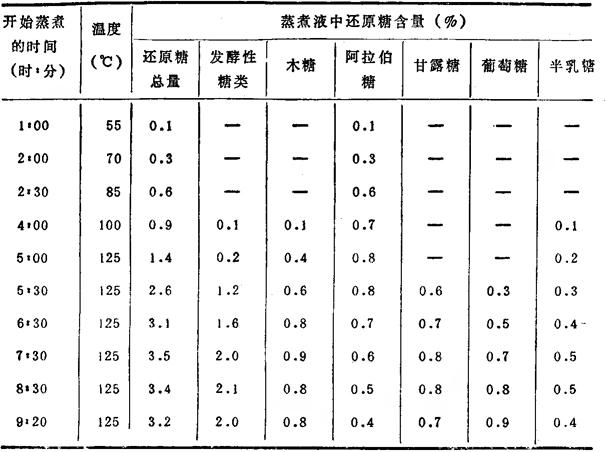 1.酸性亚硫酸氢盐蒸煮 当用酸性亚硫酸氢盐法蒸煮木材时,在蒸煮的初期木素和半纤维就开始由木材转入溶液中。当蒸煮液的酸度降低时,木素的溶解速度比半纤维素快。当半纤维素溶解到占它在木材中原有含量的35%时,溶解过程就缓慢下来。木素的溶解过程也会发生类似的减缓现象,但这种现象只在木素溶解到占它在木材中原来含量的75~80%后才开始发生。在木素溶解到92~93%之前,纤维素仍然不受影响,但再进一步蒸煮,就会降低纤维素的含量、聚合度和机械强度。 表6-3-4 酸性亚硫酸氢盐蒸煮过程中木材(纸浆)的机械性质和成分的变化 酸液成分:5.12%SO2和1.4%CaO。蒸煮规程:升温到100℃——2小时,升温到110℃——1小时,在110℃保温80小时。液比(酸液量对木片重量比)——5。 用无木节的云杉木片 蒸煮液:总酸7.5%;CaO0.9%,浆的高锰酸盐硬度125  |