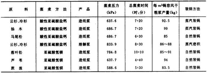 释义 | 蒸煮锅的生产能力计算 式中 G——每米3锅容的风干粗浆产量(kg/m3),其值见表1-3-41 表1-3-41 总蒸煮时间和单位锅容的风干粗浆产量 V——蒸煮锅容积(m3) T——蒸煮总时间(h),见表1-3-41 T1——平均日有效运行时间,一般取22.5h |