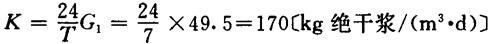 T——蒸煮周期(h) G1——蒸球单位容积粗浆产量(kg绝干浆/m3)
