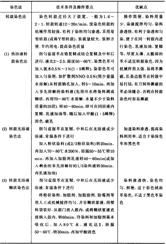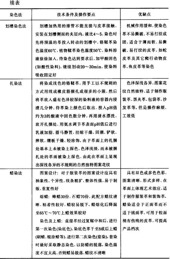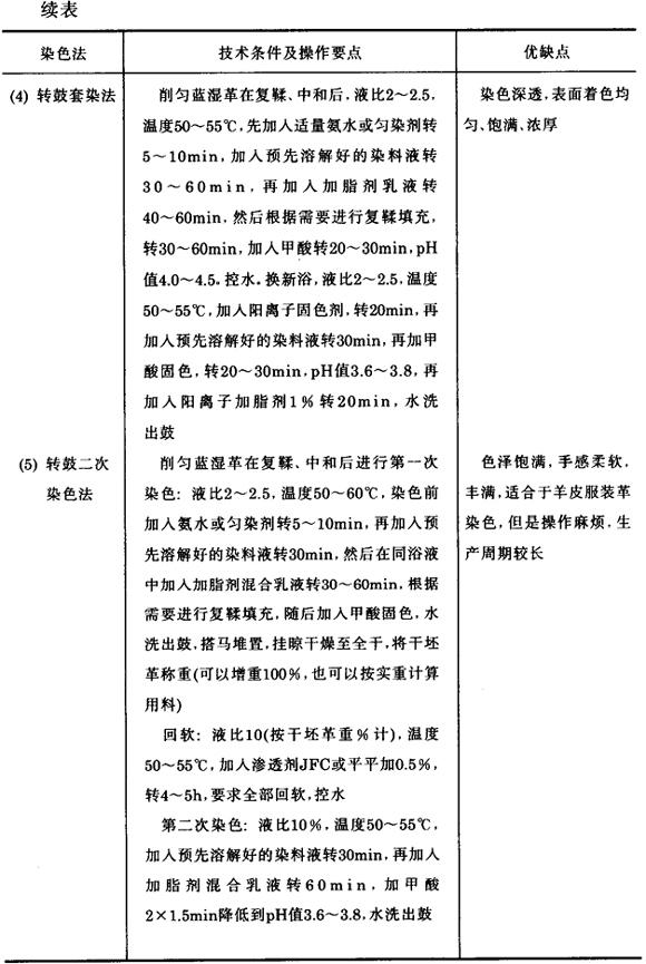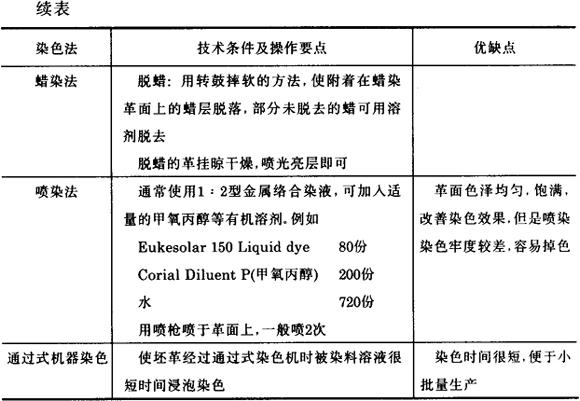 释义 | 蓝湿革的鞣后湿处理 (一)蓝湿革的分类及分级 1.黄牛蓝湿革分类检验标准 (1)分类标准 A类蓝湿革:用于生产软鞋面革、正鞋面革、正面家具革等所需的蓝湿革。 ❶ 外观指标:革身丰满,具有弹性,厚薄较均匀,颜色一致,呈湖蓝色,革面清洁,无油腻感,革里无残肉,不得带毛及发霉,臀部切口基本一致,不得有生心。 ❷ 化学指标: 水分为0%时Cr2O3≥3.5% pH值 3.5~4.0 Ts≥ 95℃ ❸ 等级指标: 一级:皮形完整,无缺陷或有下列缺陷之一者: 1)伤残总面积不超过全革面积的5%,主要部位不超过全革面积的3%。 2)全革可带破洞两处,其总面积不超过全革面积的5%,但主要部位不得超过一处。 二级:皮形完整或基本完整,有下列缺陷之一者: 1)伤残总面积不超过全革面积的10%,主要部位不超过全革面积的7%。 2)全革可带破洞三处,其总面积不超过全革面积的10%,但主要部位不得超过两处。 B类蓝湿革:即用于生产修饰鞋面革的、成革等级达到3级以上(包括3级)所需的蓝湿革。在B类蓝湿革中虱疔、虻眼、癣癞、颈脖纹、肥纹等面积不得过大,不得有粗面现象发生。 ❶ 外观指标同A类 ❷ 化学指标同A类 ❸ 等级指标: 1)革形不作严格要求,但伤残缺陷面积不得超过全张革总面积的30%,(主要部位不得超过20%)。 2)全革可带破洞四处(主要部位不得超过三处),总面积不得超过全张革面积的20%。 C类蓝湿革:革面伤残缺陷面积达30%~45%,不能按正常工艺生产三级以上修饰鞋面革,须经精细加工,增加工序,加强磨革等工艺措施生产修饰鞋面革,成革利用率达65%以上的蓝湿革。 D类蓝湿带:凡不合乎A、B、C三类的蓝湿革,原则上为反绒革,但肉面描刀多而深,或虻底、虻眼分布广,或利用价值达不到40%者,应单独堆放,另行处理。 (2)关于伤残缺陷 蓝湿革的缺陷包括:原料皮的伤残、屠宰和防腐保管中的伤残,制革生产加工中产生的伤残。 (3)缺陷的计算方法 ❶ 线型缺陷:如划伤、描刀伤等,按其长度乘2cm计算,如遇线型曲折不便按此计算时,则按包括此线型之内最小矩形面积计算。 ❷ 面型缺陷:如伤痕、孔洞和聚集的虻眼、痘疤、癣癞等按其面积大小来计算,但如有两个或两个以上的缺陷相距不超过5cm,应划为一项面积型缺陷来计算。 ❸ 聚集型缺陷:如分散的虻眼、虻底、虱疔和两个以上的缺陷聚在一起相距不超过7cm所形成的较大面积的缺陷,按其最小矩形面积的1/2来计算。 (4)几点说明 ❶ 革身丰满的条件下,有不易看出的小伤残不按缺陷论,但小伤残分布全张革,影响外观和使用者,则按缺陷论。 ❷ 距腹边18cm处部位的伤残不按缺陷计算。 ❸ 描刀深度达革厚的1/2以上,但不超过2/3时,为严重描刀伤,超过2/3为刀洞。 2.猪蓝湿革分级标准 (1)品质标准 ❶ 铬鞣好的蓝湿革呈浅蓝色,革面颜色一致,无铬斑、表面过鞣和油腻等缺陷。 ❷ 收缩温度≥95℃,或耐沸水。 ❸ 三氧化二铬含量(以0%水分计算):≥4.0 ❹ 水分含量 ≤55% ❺ 厚度:臀部不低于2.5mm ❻ 防霉要求:存放三个月不发霉。 (2)分级标准 甲级: ❶ 革身完整,粒面细致,面积1.1m2以上。 ❷ 主要部位无孔洞、无刀伤、无腐烂、无粗皱、无肥纹。 ❸ 总缺陷面积不能>10%。 乙级: ❶ 革身完整,粒面细致,面积≥0.9m2。 ❷ 主要部位允许一处2cm2以下的孔洞,和长度为3cm以内,深度不超过皮厚1/3的描刀伤一处,无腐烂、无明显粗皱,无肥纹。 ❸ 总缺陷面积不能超过20%。 丙级: ❶ 革身完整,粒面细致,面积≥0.8m2。 ❷ 主要部位孔洞不超过2个,面积3cm2,长度5cm,深度不超过皮厚1/3的描刀伤2处,无腐烂、无明显粗皱、无明显肥纹。 ❸ 总缺陷面积不超过30%。 3.山羊蓝湿革的分类 按照山羊蓝湿革粒面伤残情况及品质状况挑选: (1)山羊苯胺鞋面革:粒面要求三级品以上,四级品不超过10%,面积在0.28~0.39m2之间,厚度0.8~1.0mm(小革0.7mm)。 (2)山羊正鞋面革:粒面要求四级品以上,级外品不得超过总数的5%。 (3)山羊鞋里革:粒面要求在三级品以上,但不应有三级正鞋面革混入,最大误差不得超过3%。厚度0.6~1.2mm。 (4)本色鞋里革:粒面较差,低于三级品鞋里革的做本色鞋里革。 (5)打光苯胺鞋面革:粒面要求达到三级以上,四级品不超过10%,面积0.31~0.44m2,厚度0.8~1.2mm之间。 (6)乐器革:粒面较好,厚度在0.55~1.2mm之间。 (7)煤气表革:革身无僵硬,主要部位无孔洞,厚度为0.5~0.7mm之间。 (8)山羊绒面革:粒面污染、色花,毛孔粗大,伤残较多,厚度在0.7mm以上,革里无痘疤及疤伤和严重的血筋印痕。 (9)次蓝湿革做包跟革。 (二)挑选组批 根据粒面粗细和粒面伤残程度及成革质量要求进行挑选组批。粒面细致、颜色浅淡、均匀一致、无伤残或少伤残的蓝湿革,用于加工全粒面革。粒面细致,颜色浅淡、均匀一致、伤残较少而浅的蓝湿革,用于加工半粒面革或压花革、摔纹革。粒面粗、伤残较重的蓝湿革,用于加工修饰鞋面革或反绒面革等。 (三)鞣后湿处理前的机械加工 1.挤水 用辊式挤水机或压榨式挤水机挤水,将蓝湿革水分含量降低到约50%。由于用压榨式挤水机挤水时容易产生折印,通常还需转鼓摔软,将折印摔开,要求粒面平整无折印。用辊式挤水机挤水时,应当根据蓝湿革厚薄和水分含量多少,灵活掌握挤水压力,注意不得挤出死折,挤破粒面,也不应弄脏粒面。 2.补肉面刀伤 对于猪蓝湿革,通常用面粉和立德粉或铬革屑与胶水及水配成补肉面刀伤膏,将它填补在刀伤凹处,并用刮刀抹平,撒上滑石粉或贴上报纸条,再一张一张地堆置
