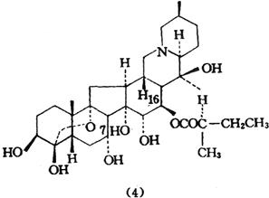 释义 | 藜芦 【概况】: 异名 黑藜芦(通称),山葱(河北、山东、山西),人头发(四川)。 基源 为百合科藜芦属植物藜芦、毛穗藜芦、天目藜芦、毛叶藜芦、兴安藜芦的干燥根及根状茎。 原植物 以藜芦作中药的有5种植物,其中藜芦Veratrum nigrum L.[V.niigrum L.var.ussuriense Loes.f.;V.nigrum L.var.microcarpum Loes.f.;V.ussuriense(Loes.f.)Nakai]大部分地区均产,应用较为普遍。其它4种分别在产地或民间亦作藜芦入药。毛穗藜芦Veratrum maackii Regel(V.mandschuricum Loes.f.;V.oblongum Loes.f.)在东北及山东作藜芦入药。 天目藜芦Veratrum schindleri Loes.f.(V.cavaleriei Loes.f.;V.maximowiczii auct.non Baker),又名邢氏藜芦(《中药志》),牯岭藜芦(《中国植物志》),在民间药用。毛叶藜芦Veratrum grandiflorum Loes.f.(V.puberulum Loes.f.),又名算藜芦(《中药志》)和兴安藜芦Veratrum dahuricum(Turcz.)Loes.f.(V.album L.var.dahuricum Turcz.)分别在当地作藜芦药用。 历史 《本经》始载之。《纲目》载入草部,毒草类。 宋《图经本草》云:“今陕西山南东西州群皆有之。辽州(今山西阳县)、均州(今湖北均县)、解州(今山西解县)者尤佳。三月生苗。叶青,似初出棕心;又似车前。 茎似葱白,青紫色,高5、6寸,上有黑皮裹茎,似棕皮。有花肉红色(与今日黑紫色的花不符)。根似马肠根,长4、5寸许,黄白色,2、3月采根,阴干。所说即本种。但古时混称“鹿葱”,这是不恰当的,鹿葱应是萱草的别名。 形态 多年生草本,高60~100cm。 根状茎短圆柱形,具多数细长的须根,肉质,外皮黄白色。茎直立,基部有黑褐色棕毛状的叶柄残基。 叶互生、近无柄;叶阔椭圆形,至卵状披针形,长达30cm,宽达10cm,先端渐尖,基部渐狭,下延成鞘状抱茎,上面青绿色,下面灰绿色,有强脉而具折。圆锥花序顶生,花序轴密披灰白色绵毛;花小、杂性,雄花通常生于花序轴下部,两性花常在上部以上;花被6片,黑紫色,开展或稍下反;雄蕊6,与花被片对生,花药肾形,背著,合生为1室,子房近方形,花柱3,3室,胚珠多数。蒴果长1.5~2cm;种子具翅。花期7~8月,果期9月。 (图见《中药志》.第2册.第2版.彩图32) 生境与分布 生于海拔1200~3300m山谷、山地阴坡或灌木林下。分布于中国东北、河北、河南、山东、山西、内蒙古、江西、湖北、陕西、甘肃、新疆、四川。 亚洲北部或欧洲中部也有分布。 毛穗藜芦与藜芦的主要区别在于:叶长倒披针形,长20~40cm,宽2~6cm,基部狭窄具短柄;圆柱花序疏生较短的侧生花序,侧生花序上的花梗明显短于主轴上的花梗。 花果期7~9月。(图见《中药志》.第2册.第2版.582页.图436)生于海拔400~1700m的山地林下或高山草甸。分布于中国东北、内蒙古和山东。朝鲜、日本和原苏联西伯利亚东部也有分布。 天目藜芦与藜芦、毛穗藜芦的主要区别为:基生叶长椭圆形或披针形,长达36cm,宽2~6cm,基部渐狭成长柄状,下连叶鞘;茎生叶披针形,无柄;花被褐绿色至褐黑色,小花梗纤细,长5~10mm。花果期6~10月。(图见《中国植物志》.第14卷.22页.图版2∶5~8)生于海拔700~1350m的山坡林下荫湿处。分布于江西、江苏、浙江、安徽、湖南、湖北、广东、广西和福建。 毛叶藜芦与藜芦,毛穗藜芦、天目藜芦的主要区别为:包裹茎基部的叶鞘只具平行纵脉,无横脉,枯死后残留为纵的纤维束;基部叶矩圆形至矩状椭圆形,长达20cm,宽达10cm;茎上的叶由下而上渐小,广卵形,卵状披针形至线状披针形;花被绿白色或黄绿色,边缘有明显的啮蚀状牙齿。子房密生绵状毛。 花果期7~8月。 (图见《中国植物志》.第14卷.25页.图版3∶1~5)生于海拔2600~4000m的山坡林下或湿生草丛中。 分布于中国江西、浙江、台湾、湖南、湖北、四川和云南。 兴安藜芦与以上4种藜芦的主要区别为:包裹茎基部的叶鞘只有平行纵脉,无横脉,枯死后残留为纵的纤维束;叶背面被银白色绒毛。花期6~8月。(图见《中药志》.第2册.第2版.582页.图435)生于草甸和山坡湿草地。 分布于中国辽宁、吉林、黑龙江。朝鲜和原苏联西伯利亚也有。 。【生药】:栽培 宜冷凉而较阴湿的环境,对土壤选择不严,但以湿润、肥沃的壤土为好。 用种子繁殖,育苗移栽。10月中、下旬采收成熟种子后播种,按行距22~25cm划行条播,深2~3cm,将种子和草木灰拌混后匀撒沟中,每亩用种量1~1.5kg。 播后覆薄土稍加镇压。出苗后,注意中耕除草、匀苗和肥水管理。 第2年冬初倒苗后移栽,按行距22~26cm开3~5cm深的条沟,以株距7~10cm栽种。栽后,每年结合中耕除草,追肥2次。春季出苗或返青后,施人畜粪水1次;冬季倒苗后,施堆肥、厩肥或草木灰1次。 采集 5~6月末抽花茎前采挖根部或连同少部分根状茎,除去地上部分的茎叶,洗净,晒干。或挖取全草,除去泥土,晒干。 中国大部分地区均产。 鉴别 性状 藜芦茎基部常呈圆柱状,外层叶鞘为黑色的网状纤维束;与根茎接触部收狭。根茎圆柱形或圆锥形,长1~4cm,直径0.7~3cm,表面棕褐色,棕黄色或土黄色,根茎上生有可达30多条须根。 须根细长,弯曲,完整者长10~20cm,直径1~5mm;表面黄褐色或灰褐色,上端具横皱纹及纵皱纹。质坚脆,易折断;断面白色,皮有腔隙,中心为淡黄色中柱,常与皮部分离。 气微,味极苦,粉末有催嚏性。 毛叶藜芦与藜芦相比,外层叶鞘为非网状的纤维束。 根茎多呈圆锥形,少呈圆柱形,直径可达6cm。须根数目可达数百条,常交织在一起,完整者长可达30cm,直径1~7mm。 兴安藜芦与藜芦相比,药材常较大,根茎直径可达7cm。茎基部呈圆锥状,外层叶鞘为土褐色、非网状的纤维束